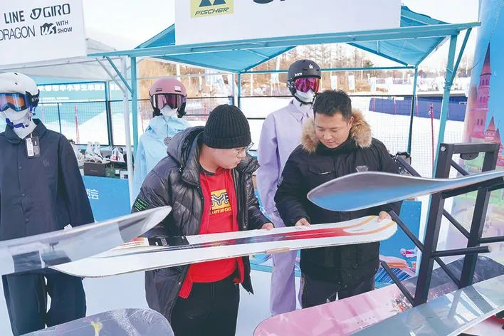 室內展示展銷豐富多彩,室外的“百大試滑”展區(qū)也讓人驚喜,這里匯聚了60家國內外一線滑雪品牌,并免費為游客提供試滑試戴服務,增強互動性的同時,也激發(fā)了游客對冰雪運動的熱情。