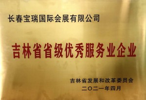 長(zhǎng)春寶瑞國(guó)際會(huì)展有限公司被吉林省發(fā)改委評(píng)為“省級(jí)優(yōu)秀服務(wù)業(yè)企業(yè)”。該類企業(yè)全省共計(jì)33家,長(zhǎng)春市僅占7個(gè)名額,寶瑞公司作為唯一的會(huì)展服務(wù)業(yè)企業(yè)入選。